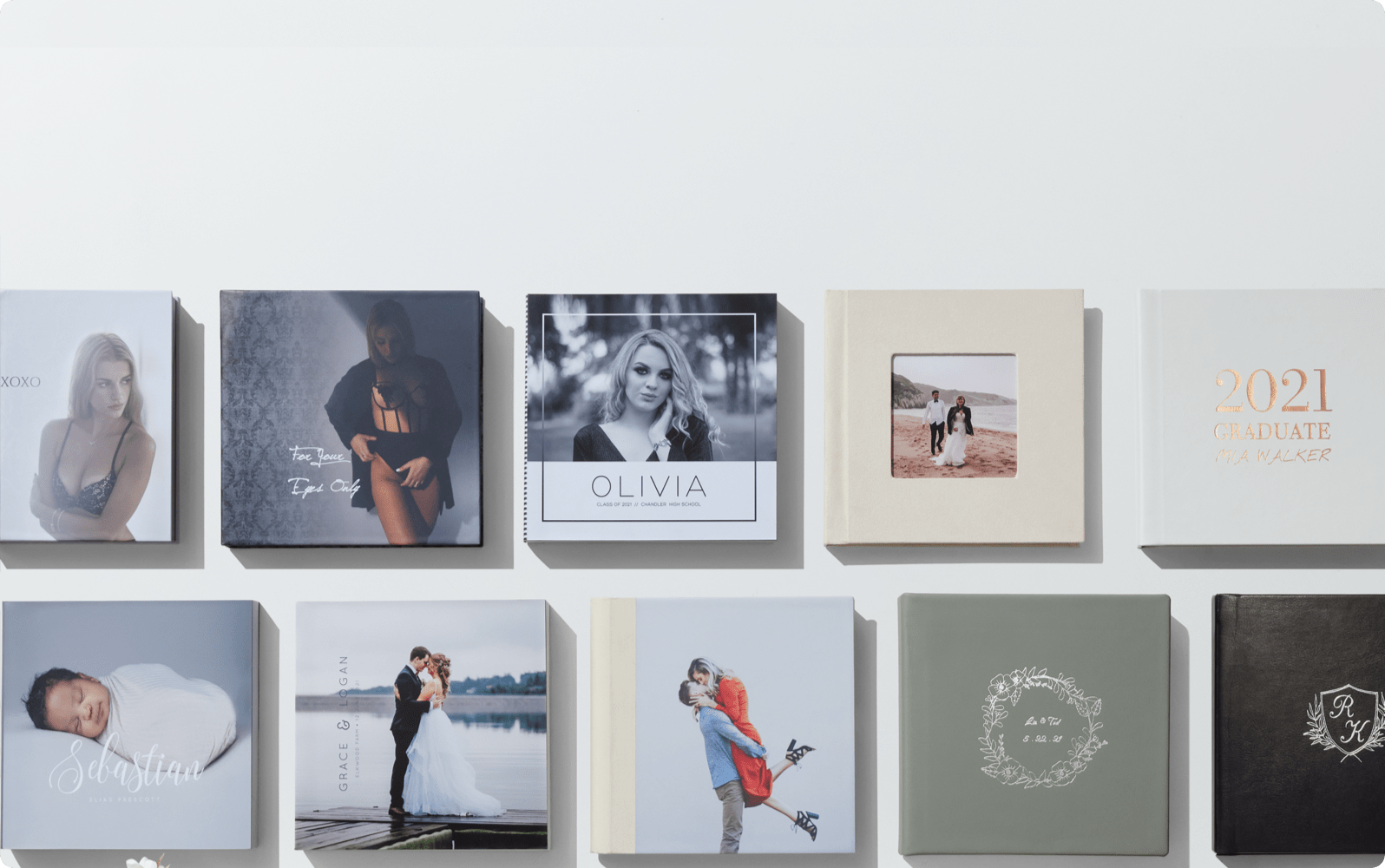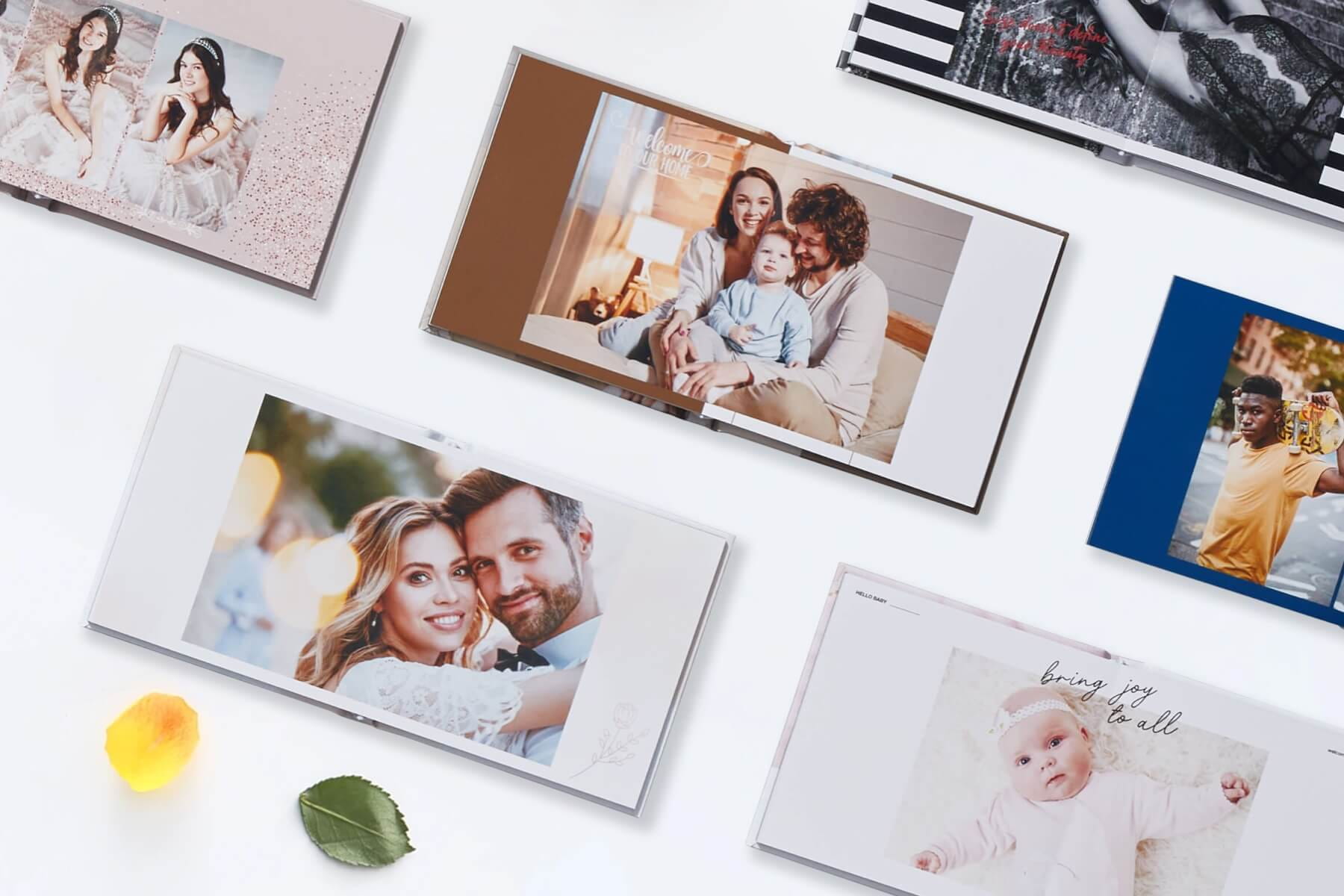 Albums come in a range of pre-designed themes that include Wedding, Baby & Maternity, Boudoir, Senior, Family, Quinceañeras and pets.