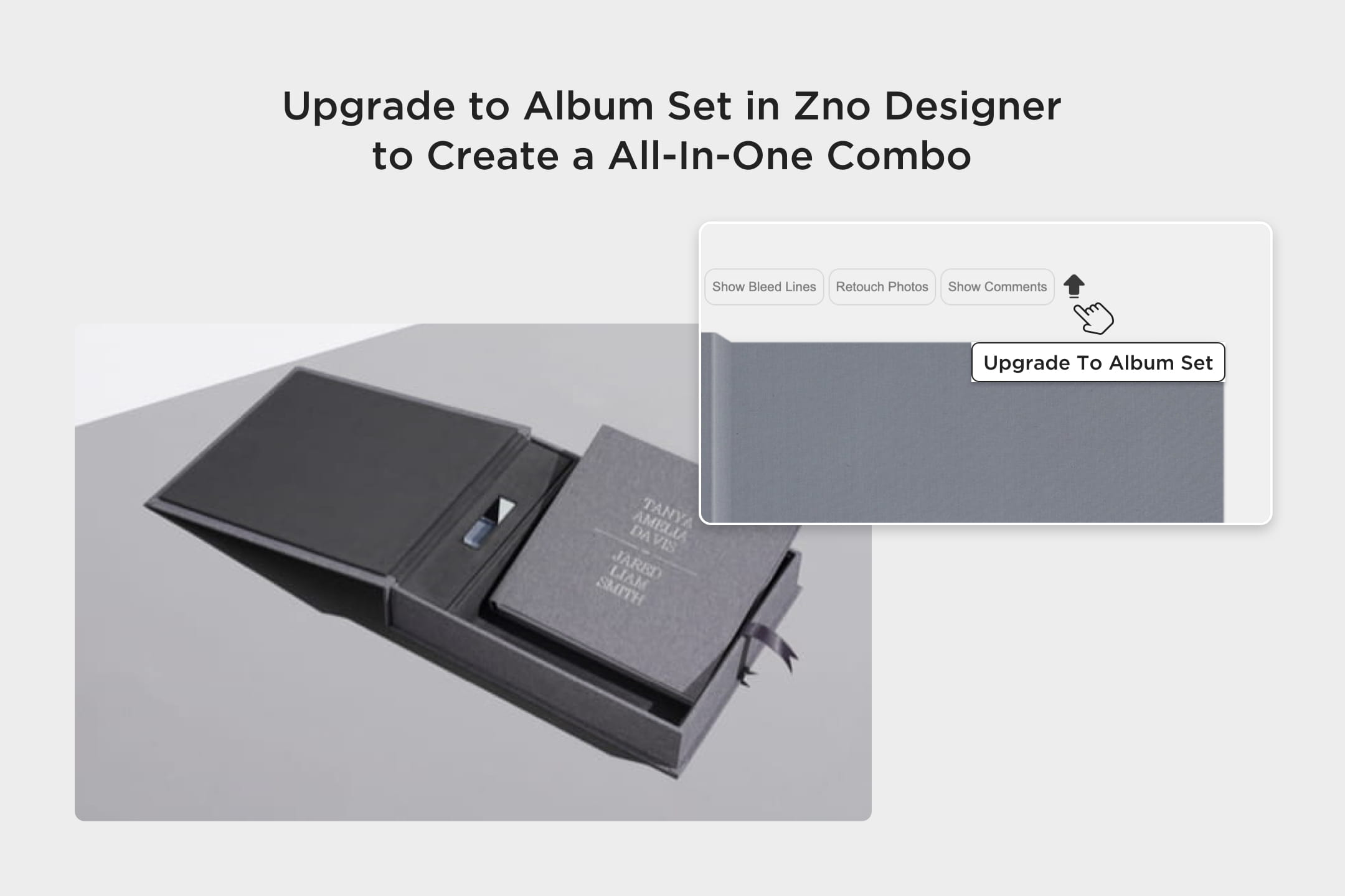 Luxurious cover materials, unique embellishments, and various sizes to match any vision.