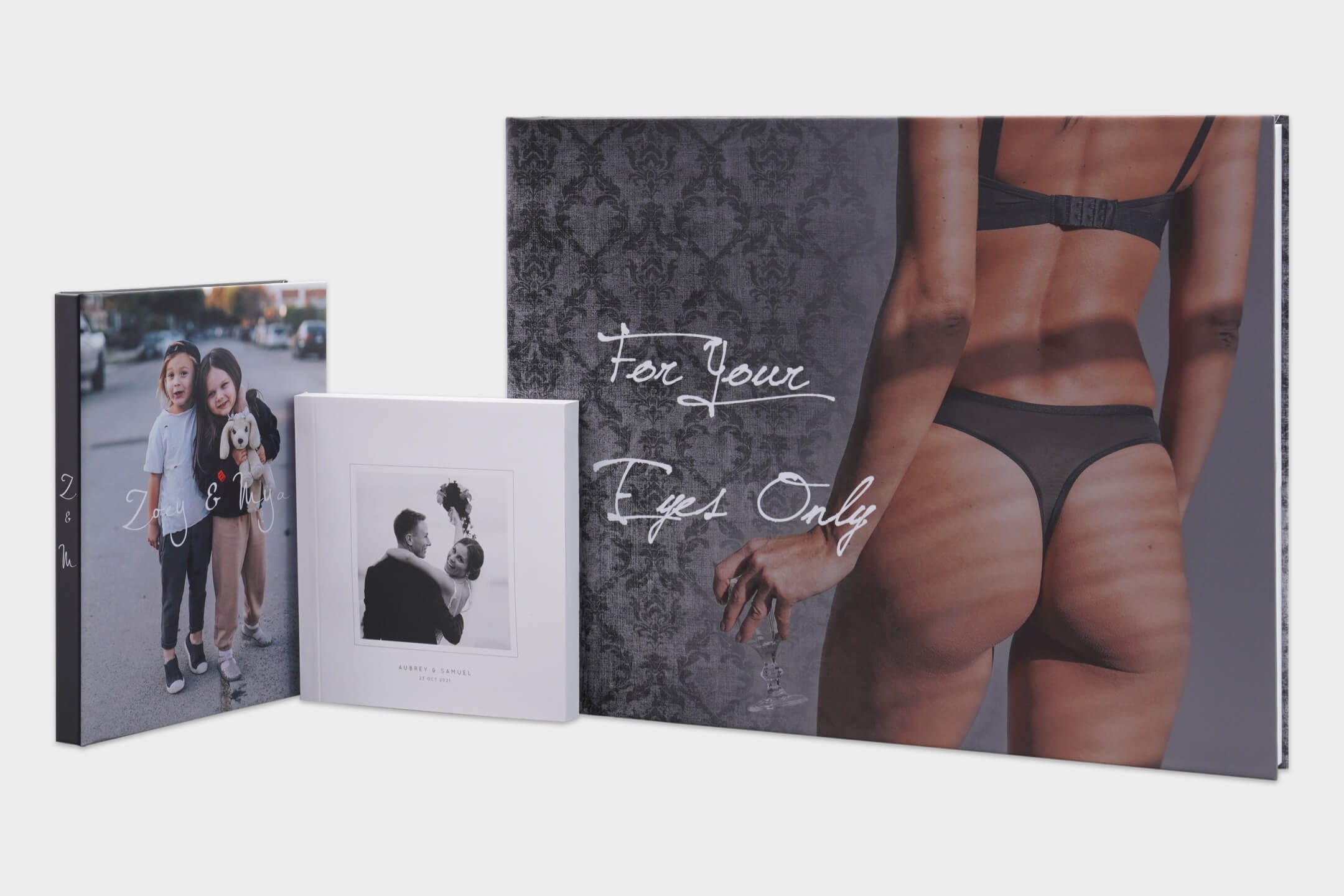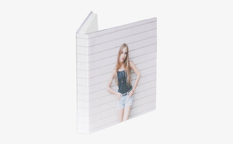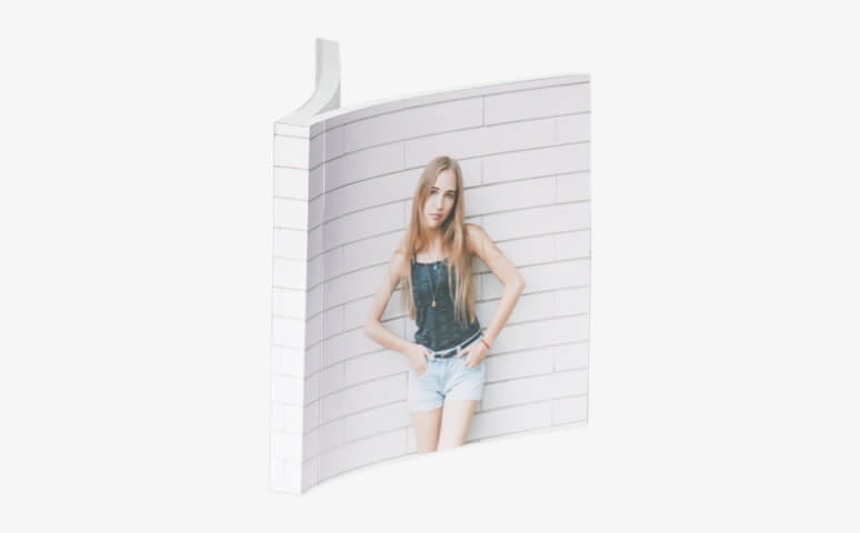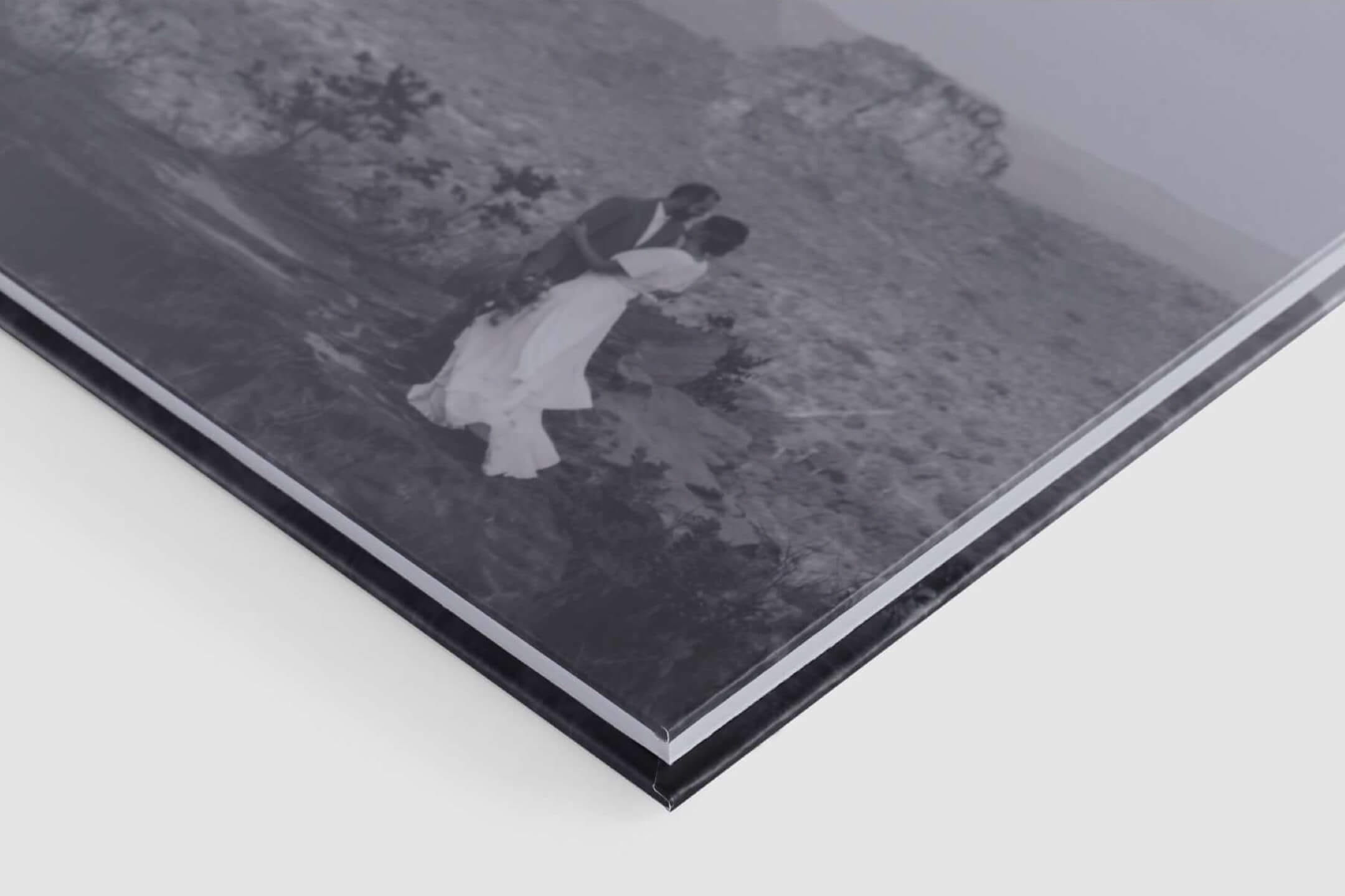 Transform your client's space with our 11x8 fashion portrait album. Featuring a soft cover and chic grey back, it tastefully showcases their style on any coffee table or shelf, resembling a magazine-inspired display.